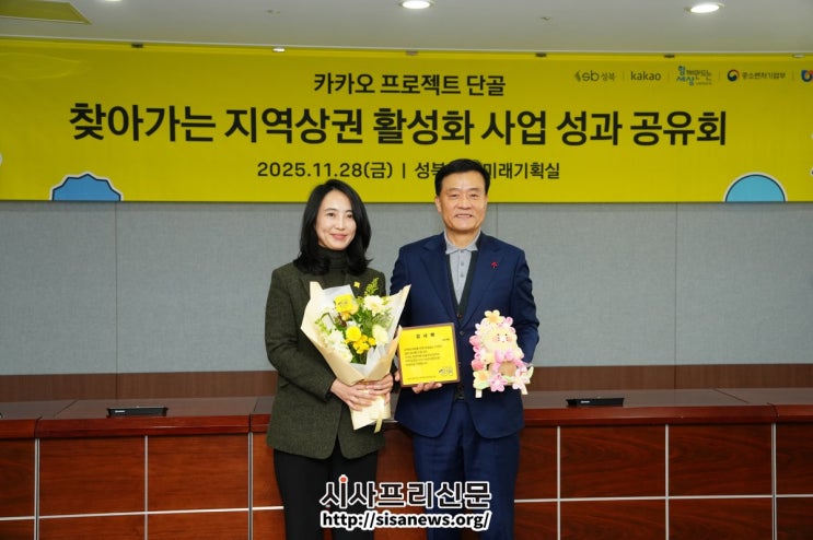 성과공유회에서 ㈜카카오는 이번 사업에 참여한 장위전통시장, 월곡달빛오거리 골목형상점가, 정릉시장, 정릉서경대길 골목형상점가, 성북동길 로컬브랜드 육성상권과 우수점포인 고향농산물, 김만희떡볶이, 블루세탁, 모던양갱, 반디플라워에 감사패를 전달했다.