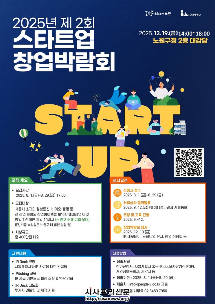 (시사프리신문=정진만 기자) 노원구가 스타트업과 투자자를 잇는 실전형 창업 무대를 다시 연다. 노원구(구청장 오승록)는 인덕대학교(총장 김광만)와 함께 오는 12월 19일 오후 2시부터 6시까지 노원구청 2층 대강당에서 ‘제2회 스타트업 창업박람회’를 개최한다.