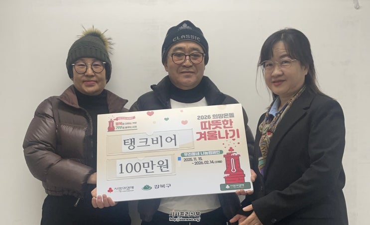 강북구(구청장 이순희) 수유3동은 주민자치회와 지역사회보장협의체, 그리고 지역 상점인 탱크비어로부터 ‘2026 희망온돌 따뜻한 겨울나기’ 성금과 물품을 기탁받았다고 밝혔다.