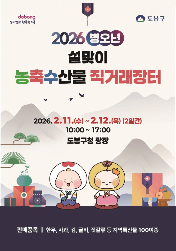 도봉구(구청장 오언석)가 오는 2월 11~12일 2일간 도봉구청 광장에서 설맞이 농축수산물 직거래장터를 연다.