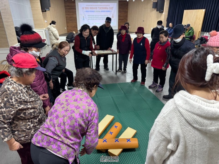 오후에는 복지관 중장년 1인 가구 자조모임 회원들과 연계한 세대교류 프로그램으로 이어졌다. 전통놀이 체험(윷놀이, 볼링, 투호, 제기차기, 딱지치기)과 초성퀴즈 게임을 활용한 인지기능 강화 활동을 통해 치매 예방과 두뇌 활성화를 도왔으며, 음악체험 시간에는 어르신들이 듣고 싶은 노래를 신청해 함께 부르며 정서적 교류를 나눴다.