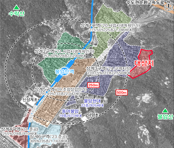 이어 “이번 용역에서는 희망촌 용도지역 종상향(자연녹지지역->제2종일반주거지역)을 통해 상계3구역과 통합개발하는 방안까지 함께 검토하게 된다. 통합개발시 단독개발 대비 비례율이 증가하여 부족했던 사업성이 대폭 확보되는만큼 이번 가이드라인 수립은 단순한 연구용역이 아니라 실질적인 정비계획 수립으로 이어지는 교두보가 될 것”이라고 강조했다.