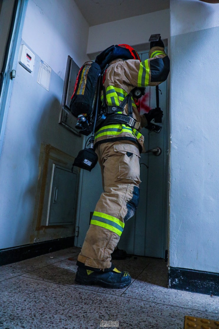 이번 훈련은 강제개방이 어려운 벽 밀착형 방화문과 협소공간 출입문에 대한 신속 개방 능력을 향상하는 데 중점을 두었다.