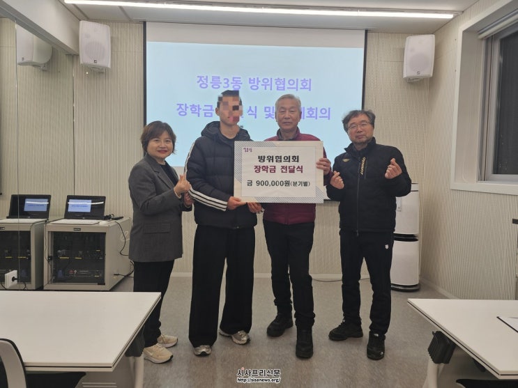 성북구 정릉3동 방위협의회가 지난 3월 4일 회원들의 자발적인 후원으로 마련한 장학금을 관내 고등학생 3명에게 전달했다.