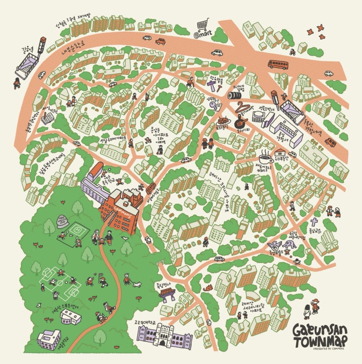 커먼즈는 단순히 공동의 공간을 의미하는 개념을 넘어 도시 안에서 서로 연결되고 공존하는 생활 기반을 뜻한다. 개운산마을은 아파트를 특정 집단만의 배타적인 공간으로 만들기보다 주변 지역과 관계를 맺는 열린 공동체 공간으로 바라보고 있다.