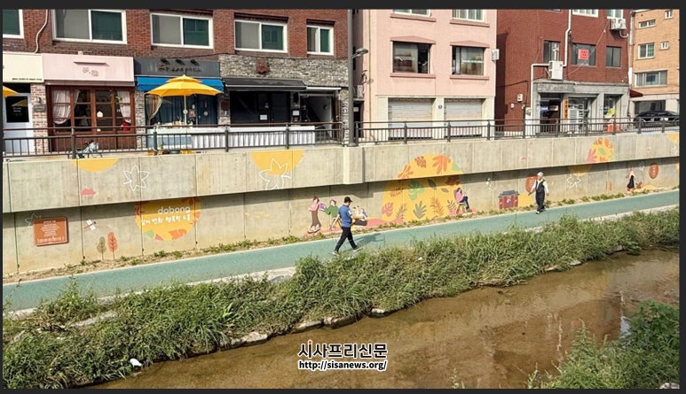 도봉구, 방학천 옹벽 360m 사계절 담은 야외갤러리로 재탄생 금강아미움 맞은편~방학교, 앞서 옹벽 공사 실시된 곳 방학천 사계절 생동감 있게 표현, 주민이 쓴 시·글귀 눈길 ▲도봉구 방학천 옹벽에 사계절 풍경을 담은 벽화가 그려져 있다. 방학천(금강...