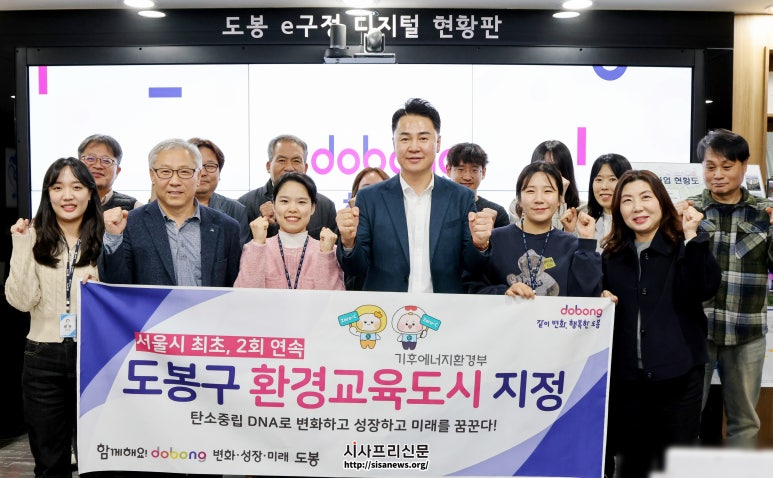 도봉구, 서울시 유일 환경교육도시 2회 연속 선정 조직·인력·예산 등 환경교육 기반 탄탄 평가 주민참여형 프로그램 주목할 만한 사례 인정 ▲오언석 도봉구청장(가운데)이 환경교육도시 2회 연속 지정을 기념하며 직원들과 단체 사진을 찍고 있다. 도봉구(구청장 ...