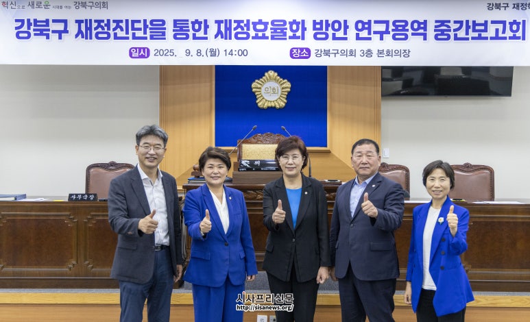 강북구의회 재정혁신 연구회, ‘중간보고회 및 세미나 개최’ (시사프리신문=유영일 기자) 강북구의회(의장 김명희) 의원연구단체인 ‘강북구 재정혁신 연구회’ (대표의원 최미경)는 지난 9월 8일, 의회 3층 의원회의실에서 중간보고회 및 세미나를 가졌...