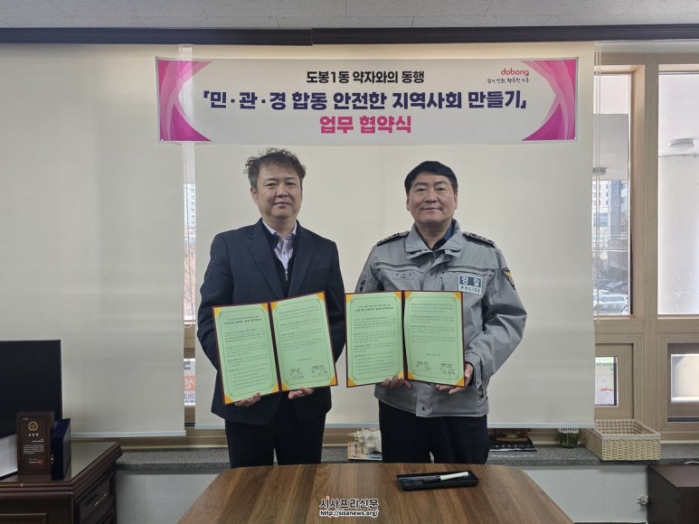 도봉구 도봉1동, 도봉1파출소와 ‘안전한 지역사회 만들기’ 협약 체결 ▲도봉1동-도봉1파출소 ‘안전한 지역사회 만들기’ 협약 사진 도봉구(구청장 오언석) 도봉1동이 지난 3월 12일 도봉1파출소와 ‘도봉1동 약자와의 동행 민·관·경 합동 안전한 지역사회 만들기’ 사...