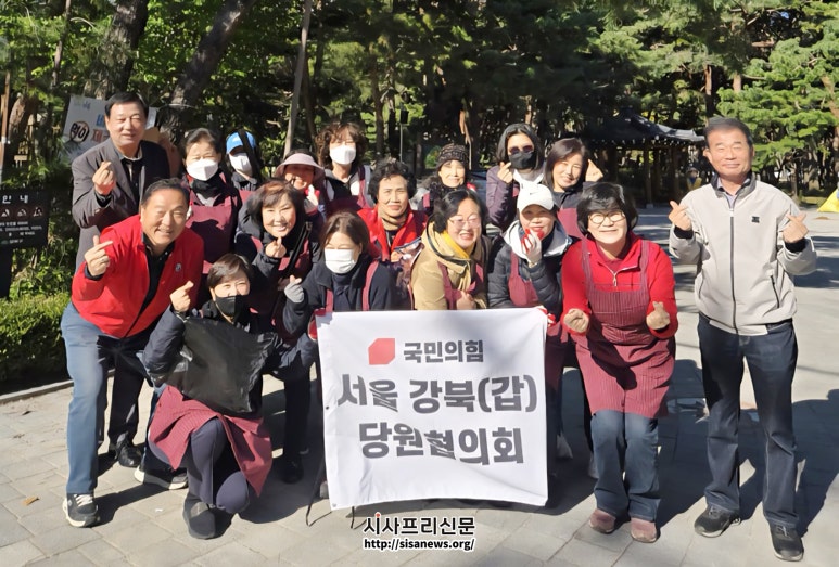 국민의힘 강북갑 여성봉사단, ‘솔밭공원 청소봉사’ ▲국민의힘 강북갑 여성봉사단, ‘솔밭공원 청소봉사’ 기념사진 (시사프리신문=유영일 기자) 국민의힘 강북갑(위원장 김원필) 여성봉사단은 지난 10월 27일, 우이동 솔밭공원 청소봉사 활동을 펼쳤다. ...