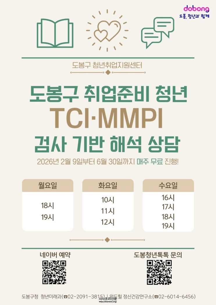 도봉구, 취준생 1:1 심리상담… 취업 스트레스·불안 잡는다 2가지 전문 검사 진행 1:1 맞춤 상담까지 도봉구(구청장 오언석)가 도봉구 거주 취업 준비 청년을 대상으로 심리 지원 프로그램을 운영한다. 구는 프로그램을 운영하며, 단순 취업 상담을 ...