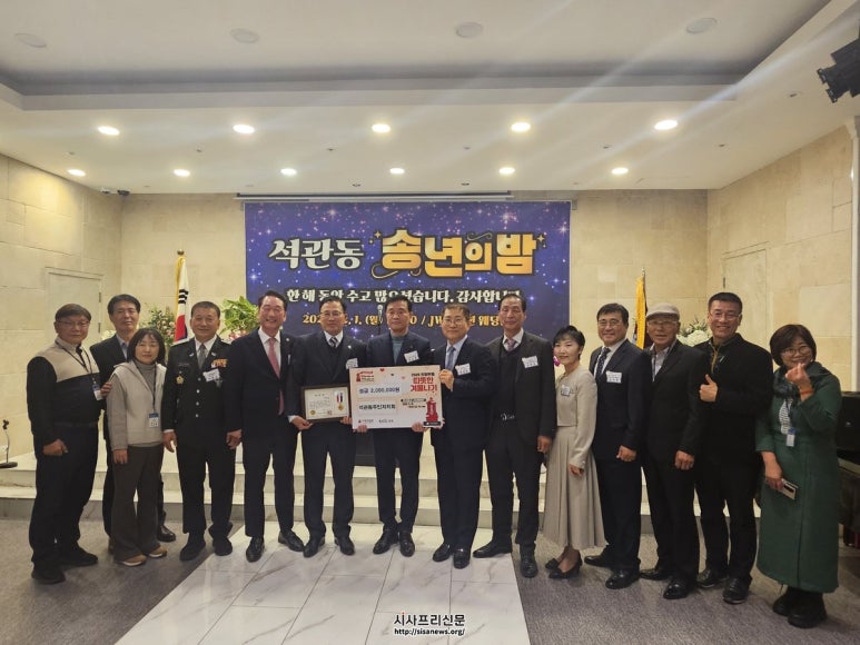 석관동 통합송년회, 주민 화합 속 성황리 개최 ▲석관동 통합송년회, 주민 화합 속 성황리 개최 (시사프리신문=김영국 기자) 석관동(동장 전영훈)과 석관동주민자치위원회(회장 오점종)에서는 지난 12월 1일 오후 6시, JW웨딩홀에서 석관동 18개 직...