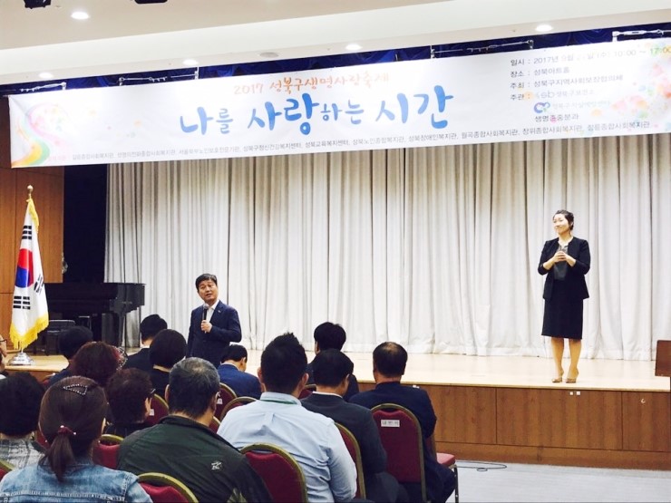 서울 성북구(구청장 김영배)가 지난 달 27일 오전 10시, 구청 아트홀에서 2017 성북구 생명사랑축제 ‘나를 사랑하는 시간’을 개최했다. 지역사회보장협의체가 주최하고 생명존중분과, 성북구보건소, 자살예방센터가 주관한 이번 행사는 독거어르신 혹은 장애가 있...