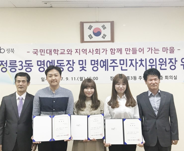 서울 성북구(구청장 김영배) 정릉3동에서는 대학생들이 마을공동체 회복과 지역사회 발전을 위해 전면에 나섰다. 11일 오후 정릉3동(동장 박현식)에서는 주민센터와 국민대학교가 정릉3동 명예 동장 및 명예 주민자치위원장 위촉식을 개최하고 국민대학교 재학생으로 구...