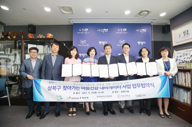 지난 6월 13일 서울 성북구(구청장 김영배)는 지역 상담전문 기관 4개소와 ‘찾아가는 마음건강 내비게이터’ 사업에 대한 업무협약을 체결하고 정신건강문제로 어려움을 겪는 복지사각계층의 심리상담 지원에 나섰다. ‘찾아가는 마음건강 내비게이터’ 사업이란 찾아가는 동...