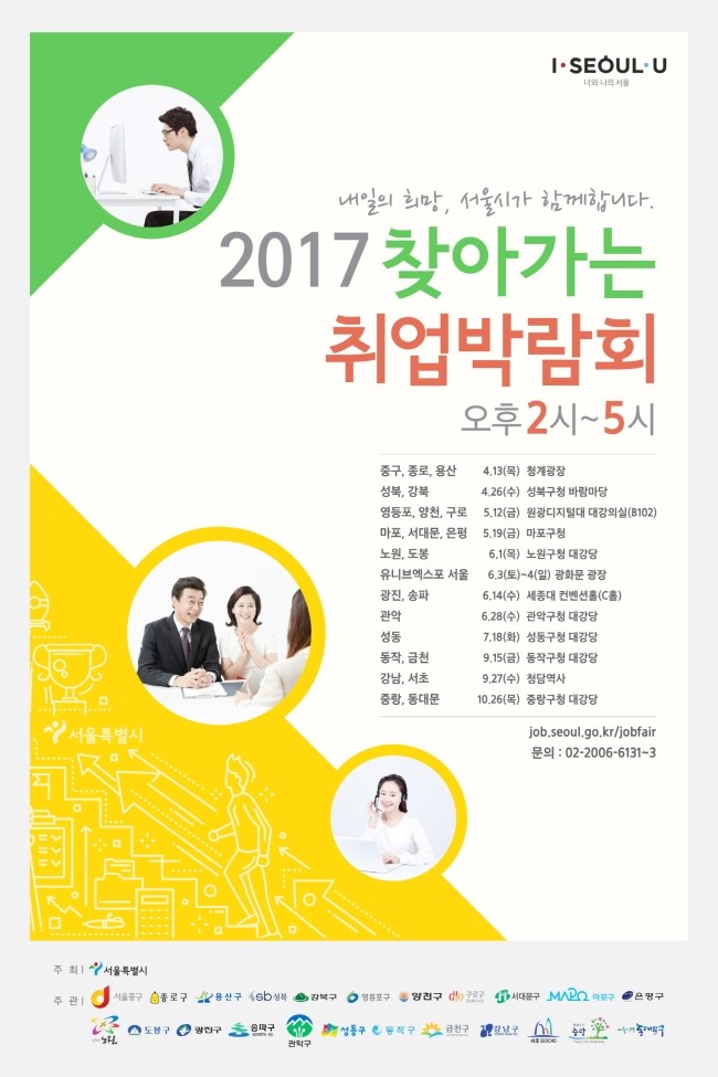 오는 4월 26일 오후 2시, 서울 성북구(구청장 김영배)가 ‘2017 찾아가는 취업박람회’를 성북구청 앞 바람마당에서 개최한다. 이번 박람회는 구인기업과 구직자들에게 실질적인 취업과 채용을 지원하기 위해 성북구·강북구·서울특별시가 공동 주최하고 ㈜커리어넷에서 행...