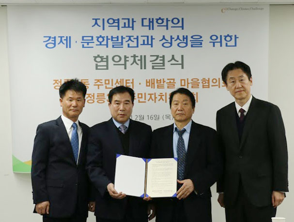 성북구 정릉3동주민센터(동장 박현식)와 주민자치위원회(위원장 이상언), 배밭골 마을협의회(회장 김영승), 국민대학교 산학협력단(단장 임홍재)가 손을 맞잡고 마을공동체 회복에 나섰다. 지난 16일(목) 국민대학교 산학협력관에서 지역과 대학의 경제·문화발전과 상...