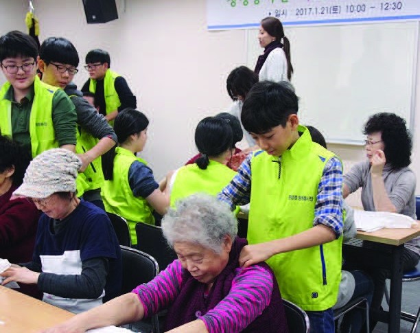 지난 달 21일 토요일 오전, 성북구 종암동에서 청청(靑靑)마을봉사단원들이 지역 어르신 25명을 주민센터로 초청, ‘어르신 건강 손마사지’ 행사를 열어 손끝으로 ‘가족의 정’을 전했다. 청청마을봉사단은 지난해 5월, 종암동의 중·고등·대학생 40여명이 참여, ...