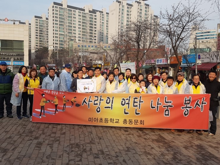 성북구(구청장 김영배) 길음1동에서는 지난 7일(토)에 미아초등학교 동문회(회장 양승열) 30여명의 회원들이 길음역세권 재개발 지역에 거주하는 연탄 사용 저소득 5가구에 연탄 1,000장을 전달해 이웃사랑을 실천했다. 이날 미아초등학교 동문회원들은 경제적으...