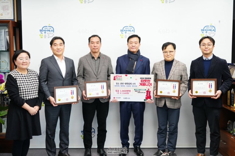 성북구 청소대행업체 6개사, 저소득 취약계층 지원 성금 기탁 ‘2026 희망온돌 따뜻한 겨울나기’ 참여, 총 1천 700만 원 전달 생활폐기물·재활용·음식물 처리 등 청소 관련 업체 공동 기부 성북구 청소대행업체 6개사, 저소득 취약계층 지원 성금 기탁 성...