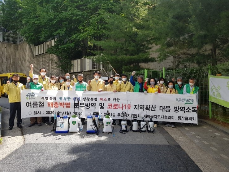 성북구(구청장 이승로) 월곡1동주민센터(동장 김종환)에서는 여름철 해충퇴치와 코로나19의 지역 전파 감염 확산에 따른 대응 방안으로 1일 직능단체(주민자치위원회, 새마을지도자협의회, 통장협의회)와 합동으로 방역차량을 이용한 연무방역과 코로나19 살균소독 방역...