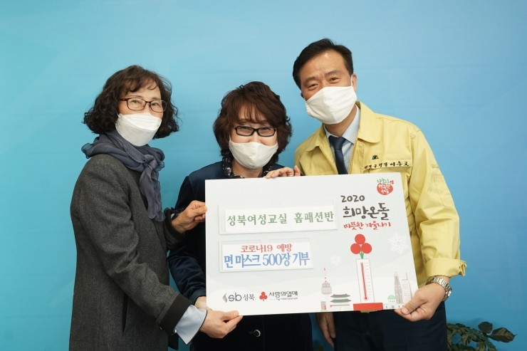 성북구(구청장 이승로) 성북여성교실의 홈패션 강사와 수강생들이 손수 면마스크를 제작해 성북구 내 저소득 취약계층을 위해 면마스크 500장을 기부해왔다. 이번에 면마스크를 전달해 온 성북여성교실은 장위동에서 여성들의 능력개발과 복지 증진을 위해 운영하는 시설이다...