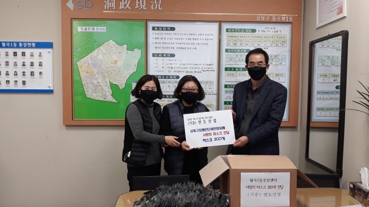 성북구 월곡1동에서는 코로나19 지역 감염 확산으로 마스크를 구입하기 어려운 시기에 연도산업(대표 박노식)에서 어려운 저소득 가구와 장애인들에게 전달해 달라고 자체 제작한 마스크를 400개를 월곡1동주민센터(동장 김종환)에 기증하였다. 코로나 19가 지역...