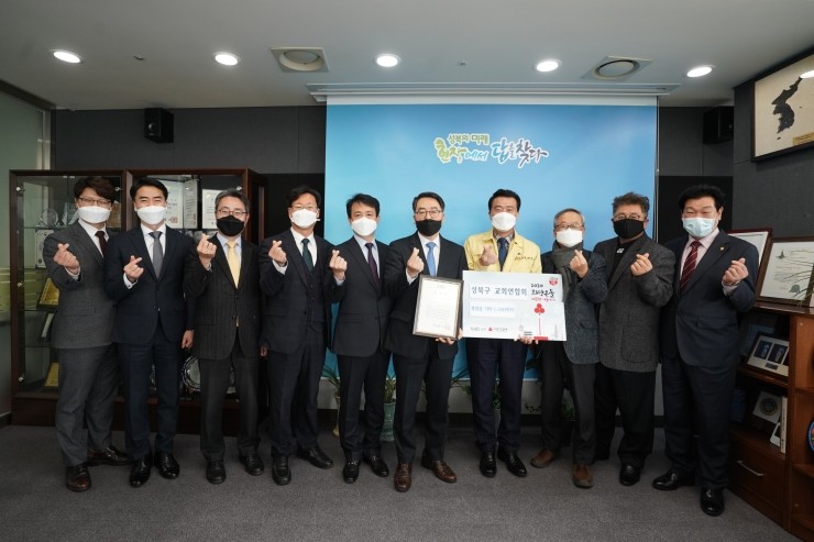 성북구(구청장 이승로)는 지난 3일 성북구 교회연합회(회장 길성운 목사·성복중앙교회)가 코로나19로 생계가 어려워진 저소득층을 위한 후원금 1,500만 원을 기탁했다고 밝혔다. 이번에 기탁한 후원금은 연합회 소속 11개 교회의 자발적인 후원금과 연합회 회...