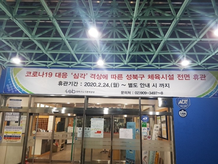 성북구시도시관리공단은 정부의 ‘코로나19 ’ 위기경보 “심각” 단계 격상에 발 맞춰 지역사회 감염증 확산 방지를 위해 공단이 관리하는 체육시설에 대하여 24일부터 긴급 휴관을 실시한다. 이번 휴관 대상 시설은 실내 체육시설인 성북종합레포츠타운, 개운산스포...