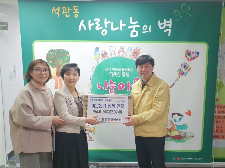 연일 계속되는 신종 코로나바이러스 소식으로 불안감이 더해지고 있는 요즘 성북구(구청장 이승로) 석관동에서는 훈훈한 소식이 전해지고 있다. 지난 5일 익명의 “석관동 마스크 천사”가 마스크 500개를 기부한 이후 석관동에서는 마스크 나눔 릴레이가 확산되고 ...