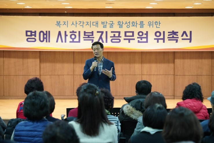 성북구(구청장 이승로)은 지난달 23일 성북구청 다목적실에서 명예 사회복지공무원 위촉식과 역량강화 교육을 실시했다. 이번에 위촉된 명예 사회복지공무원들은 지역실정에 밝고 마을일에 적극적으로 솔선수범하는 지역사회복지협의체 위원, 나눔이웃, 이웃지킴이,...