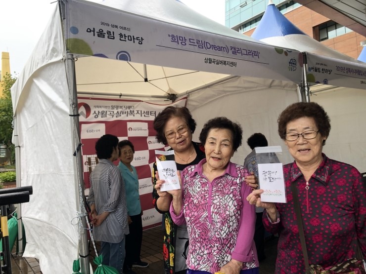 상월곡실버복지센터(김경회 센터장)는 지난 2일 노인의 날 기념행사 ‘2019 성북 어르신 어울림 한마당’에서 지역 주민 및 어르신 300여 명을 대상으로 캘리그라피 재능기부활동을 실시했다. 이번 캘리그라피 재능기부활동은 2019 성북구 평생학습 지원...