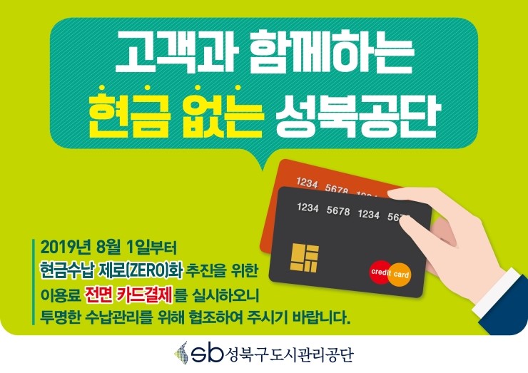 성북구도시관리공단은 수납관리의 개선을 위하여 모든 사업장의 이용료 전면 카드결제를 이달 8월 1일부터 시행하고 있다. 업무 효율성을 도모하는 동시에 수납관리의 투명성 제고를 위해서이다. 공단 관계자는 “사회 전반에 걸쳐 카드사용이 일반화되었으며 주차요금과...