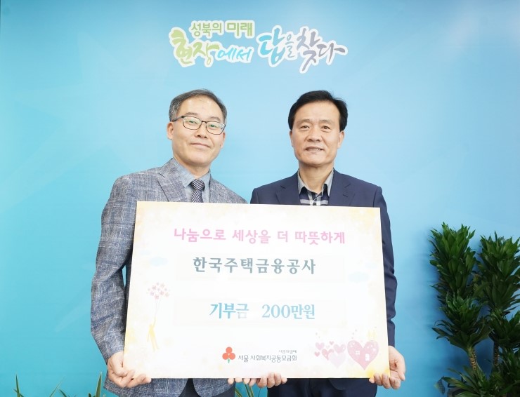 성북구(구청장 이승로)는 지난달 22일 한국주택금융공사 서울북부지사(지사장 김형목)의 복지나눔 실천을 위한 기부금 전달식을 가졌다. 한국주택금융공사 서울북부지사는 2016년 8월 성북구와 주택연금 활성화 홍보협조 및 상호협력지원 업무협약(MOU) 체결 이...