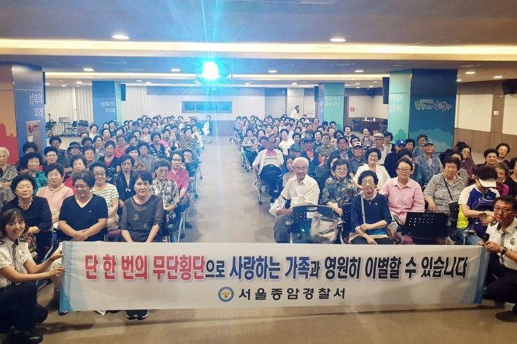 종암경찰서(서장 양영우)는 지난달 22일(월) 성북구청 지하 1층 다목적홀에서 성북노인종합복지관 ‘어르신 일자리’ 소속 노인 200여 명을 모시고 『노인 교통 사망사고 예방을 위한 교통안전교육』을 실시하였다. 이날 행사는 노인 인구 증가에 따라 노인층의 ...