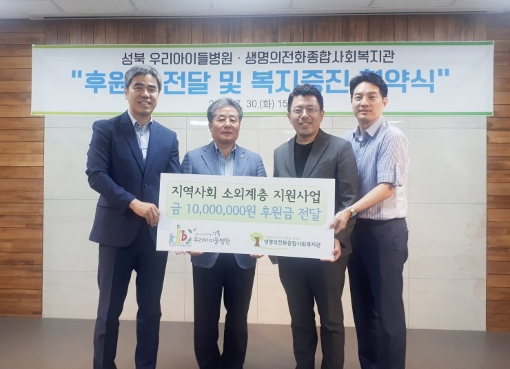 (시사프리신문=김영국 기자) 성북 우리아이들병원(이사장 정성관, 이하 의료재단)과 월곡동 소재 생명의전화종합사회복지관(관장 김연은, 이하 복지관)은 지난달 30일 지역사회 소외계층과 주민들의 건강증진을 위해 상호간 업무협약을 체결했다. 이번 협약식에는...