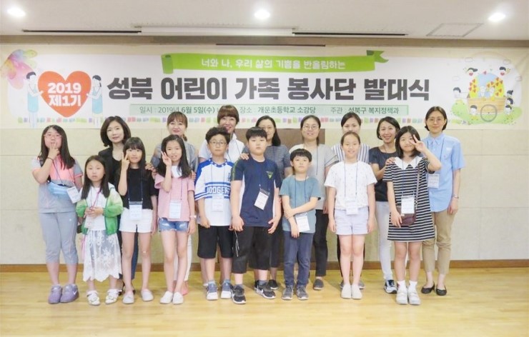 성북구(구청장 이승로)는 초등학생 어린이와 그 가족이 함께 봉사활동을 진행하는 어린이 가족 봉사단 ‘반올림 봉사단’이 탄생하였고 그 발대식을 지난 5일에 가졌다. 개운초등학교에서 열린 발대식에는 참여 학생과 그 가족으로 구성된 반올림봉사단원 10가족이 모...