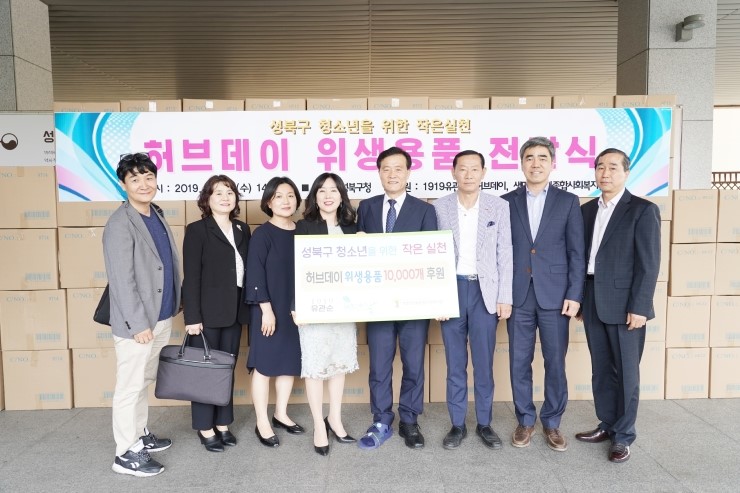 성북구(구청장 이승로)는 지난달 24일 오후 3시에 ㈜허브데이, 영화 『1919유관순』제작진, 생명의전화종합사회복지관의 공동주관으로 성북구청 앞에서 “성북구 청소년을 위한 작은실천, ㈜허브데이 위생용품 전달식”을 가졌다. 후원기업인 ㈜허브데이를 대신하여 ...