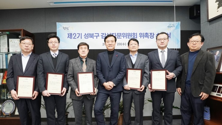 (시사프리신문=유영일 기자) 성북구(구청장 이승로)는 지난 20일 구청장실에서 감사의 전문성과 효율성을 높이기 위해 「제2기 감사자문위원회」를 출범하고, 민간감사자문위원에 대한 위촉장을 전달하였다. 성북구 감사자문위원회는 서울특별시 성북구 감사자문위원...