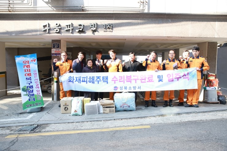 성북소방서(서장 윤득수)는 지난 14일 오전 10시 성북구 정릉동에서 저소득 가정 화재피해 복구 지원 대상 입주식 행사를 가졌다. 지난 2019년 1월 9일 화재 피해를 겪은 주민이 저소득층 화재 피해 복구 지원 대상자로 선정, 대상자의 주택이 수리ㆍ복구 ...