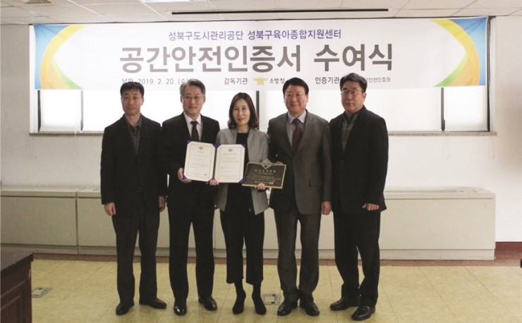 (시사픠리신문=김면수 기자) 성북구도시관리공단이 운영하는 성북구육아종합지원센터가 한국안전인증원으로부터 공간안전 인증을 획득했다. ‘공간안전인증(Safety Zone Certification)은 소방청이 감독하고, 한국안전인증원이 주관하는 기업 자...