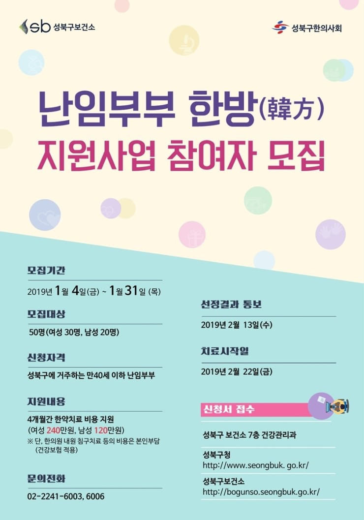 성북구(구청장 이승로)가 난임부부의 고민 해결을 위한 강력한 한방을 준비했다. <난임부부 한방(韓方) 지원 사업>이 그것으로 2세 계획이 있으나 임신에 어려움을 겪는 난임부부에게 행복한 임신, 건강한 출산을 지원하는 사업이다. 2019년 사업의...