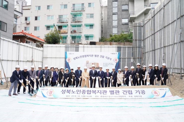 지난 1일 성북구(구청장 이승로)가 「성북노인종합복지관 별관」기공식을 건립 예정지인 성북구 종암로21길 21-4(종암동)에서 개최했다. 기공식에는 이승로 구청장 등을 비롯하여 국회의원, 시의원 및 성북구의원과 지역 어르신 등 100여 명이 참석, 어르...