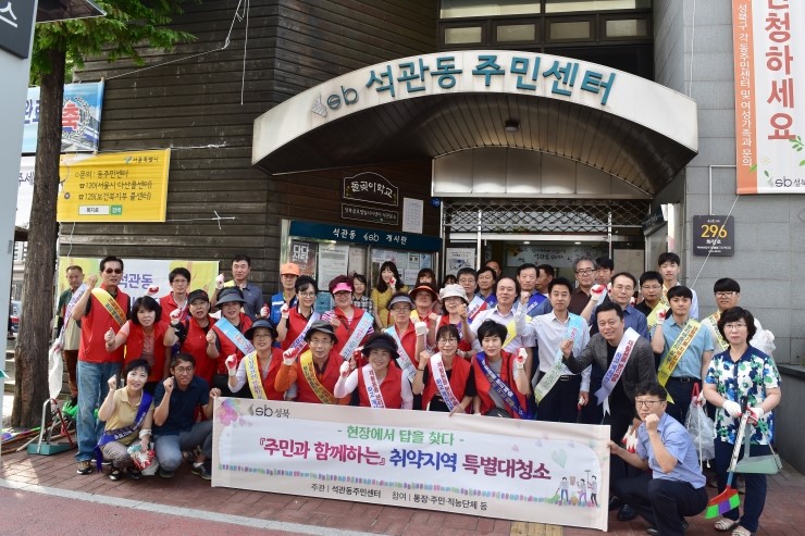 (시사프리신문=김면수 기자) 성북구(구청장 이승로) 석관동 주민센터에서는 지난 22일 오전 08시부터 주민의 이용이 많은 길거리 대청소를 실시했다. 통장, 주민 등 70여 명이 참여한 이번 대청소는 석관동의 “음식문화거리” 및 석관중·고생 등...