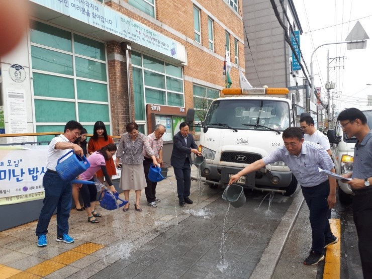 (시사프리신문=김영국 기자) 장위1동(동장 이주남)주민자치센터에서는 지난 8월 13일부터 계속되는 폭염을 줄이기 위해 내집 앞에 물 뿌리기 홍보에 나섰다. 내 집앞과 내 점포 앞 도로에 하루 2~3회 물 뿌리기 사업을 실시하면 체감 온도가 2~3도...