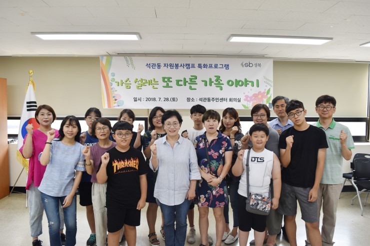 성북구(구청장 이승로) 석관동 자원봉사캠프(캠프장 한미덕)는 지난 28일(토) 자원봉사 특화프로그램 ‘가슴 설레는 또 다른 가족이야기’를 이끌어 갈 가족봉사단 “초록짝꿍”의 발대식을 석관동주민센터에서 개최했다. 석관동에서는 건강하고 화목한 가정을 가꾸...