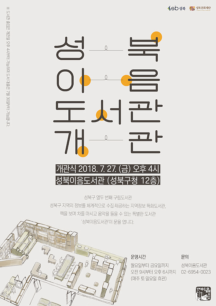성북구(구청장 이승로)가 구청사 12층에 열두 번째 구립도서관 ‘성북이음도서관’(이하 이음도서관)을 조성하고 오는 27일 오후 4시 개관식을 개최한다. ‘이음도서관’은 기존의 북카페로 운영되던 구청사 12층에 179.81㎡의 규모로 개관하며 열람실·세...