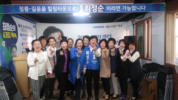 지난 5월 19일 길음, 정릉지역 서울시의원 최정순후보가 선거사무소 개소식을 가졌다. 이날 개소식에는 더불어민주당 고문 등 지역주민 300여 명 참석했다. 이날 유승희국회의원, 설훈 국회의원, 강금실 전 국회의원, 장영달 전국회의원, 박옥희 등 민주...