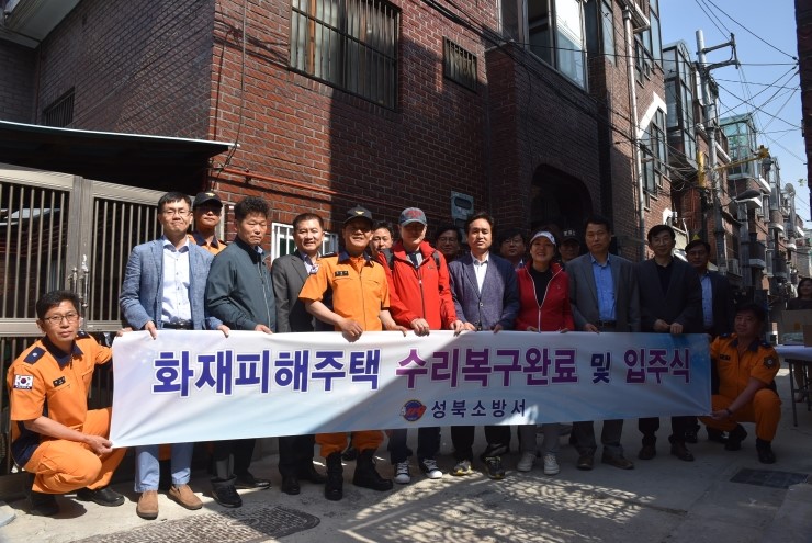 성북소방서(서장 민춘기)는 지난 10일 오후 서울시 사회복지 협의회와 S-OIL의 협조로 불의의 화재로 거주지를 잃고 실의에 빠진 시민의 보금자리를 복구해 입주식을 갖고 주택용 기초소방시설과 생활용품을 전달했다. 이번 복구 대상은 지난 3월 3일 성북...
