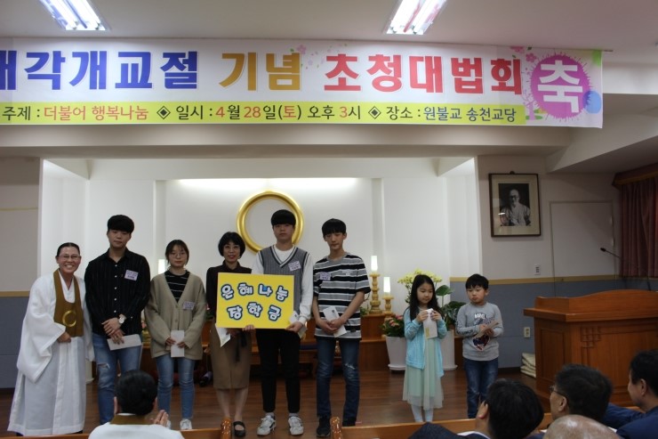 지난달 28일 원불교 송천교당에서는 대각개교절(원불교 열린날) 기념 초청대법회가 열렸다. 대각개교절은 원불교의 가장 큰 경축일로서 교조이신 소태산 대종사님께서 진리를 깨달으시고, 그 깨달음(대각)으로 인해 원불교라는 종교가 탄생(개교)하게 됨을 경축하는 ...